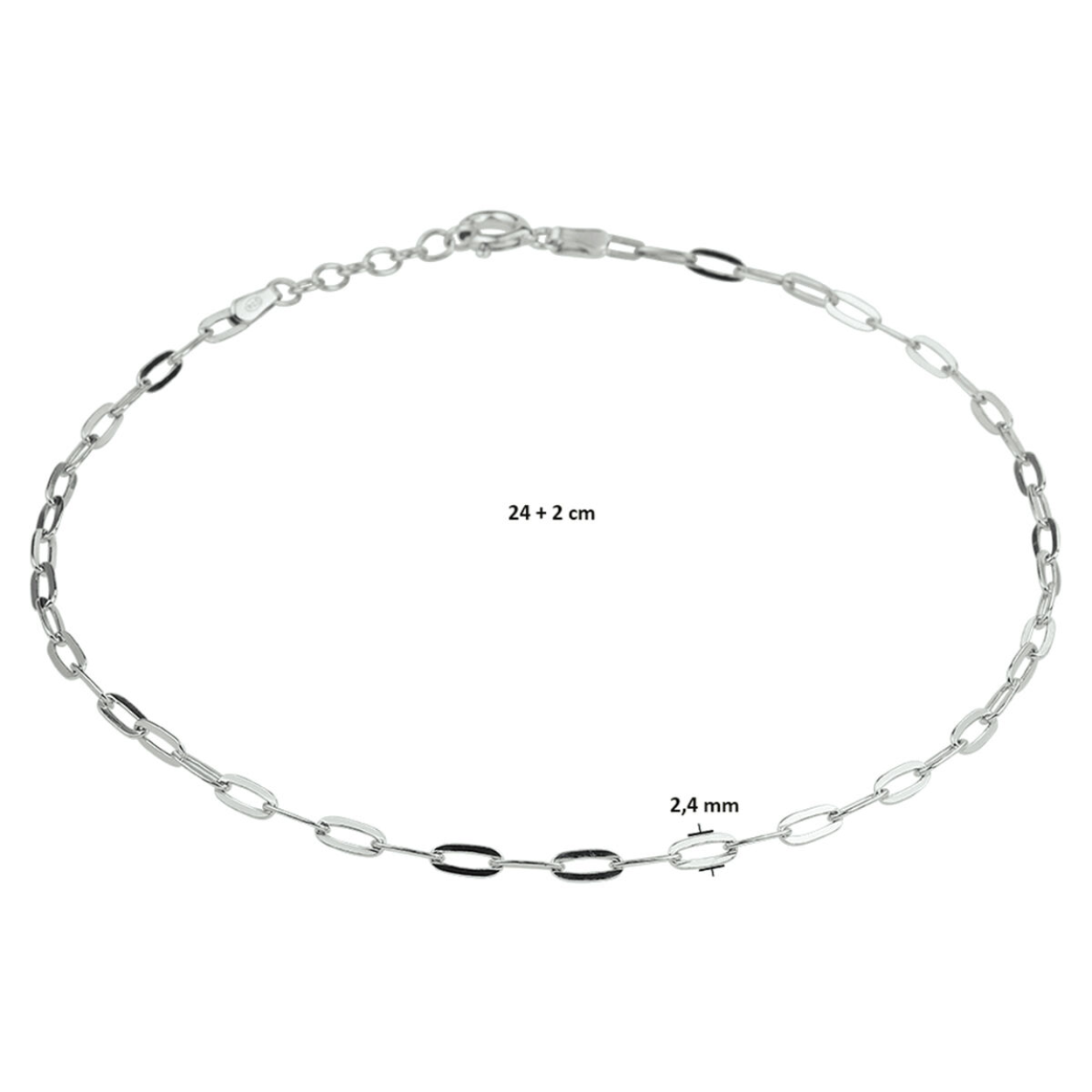 24-26cm 2,4mm Zilver enkelbandje paperclip platte buis