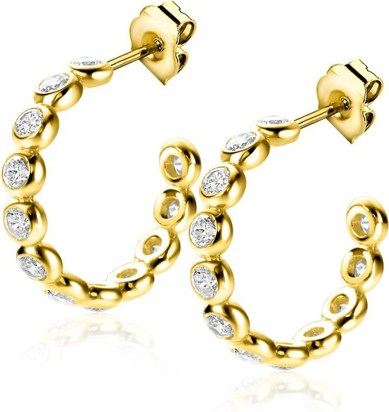 21mm ZINZI gold plated zilveren halve oorringen 4mm buisdikte, bezet met 12 witte zirconia's en met vlindersluiting ZIO2573Y