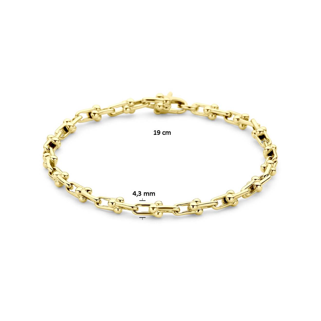 14k Geelgouden armband fantasie met een draaglengte van 19cm en een karabijn sluiting. De schakelbreedte is 4.3mm.
