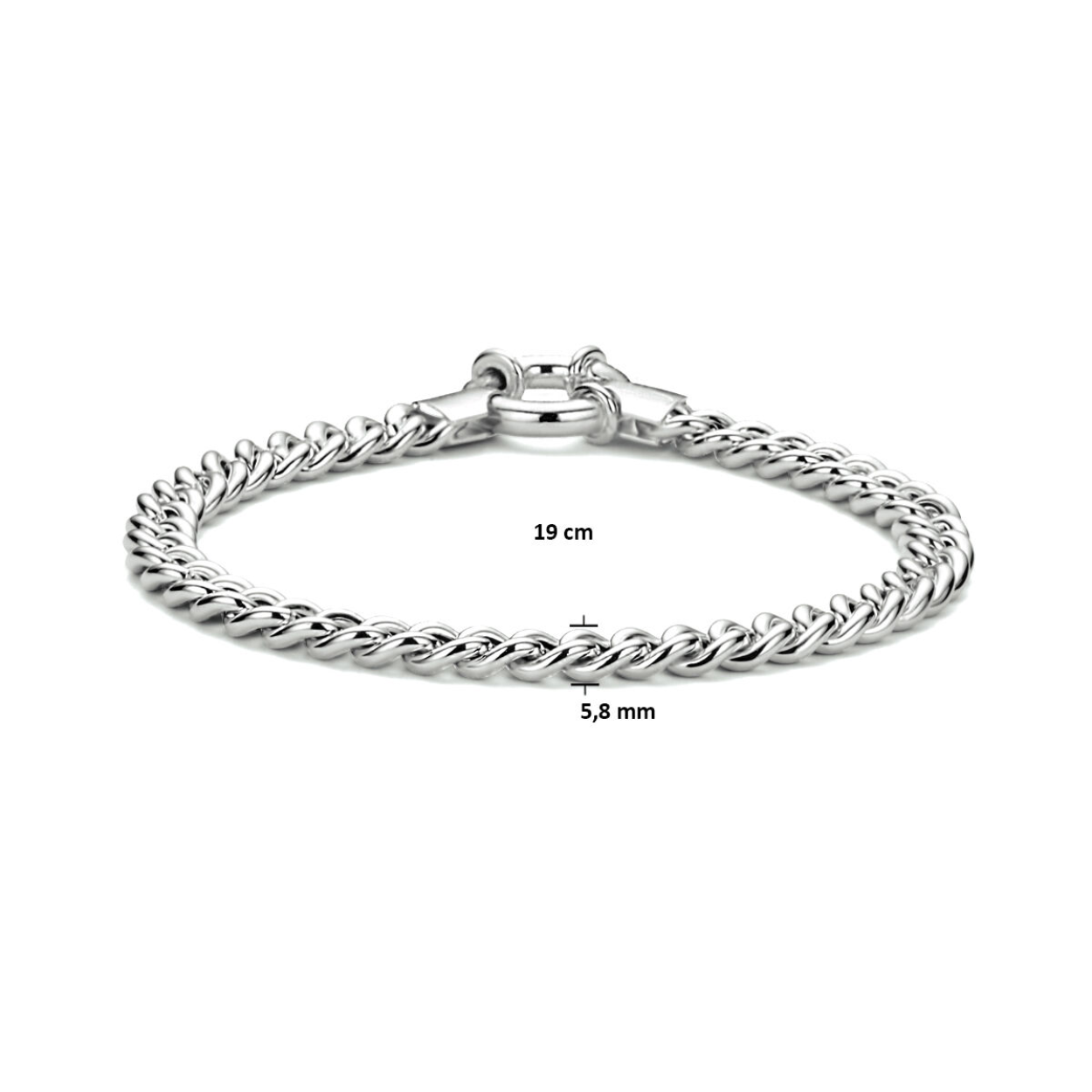 Gerhodineerd 925 zilveren gourmet armband met een schakelbreedte van 5.8mm. De armband heeft een draaglengte van 19cm.