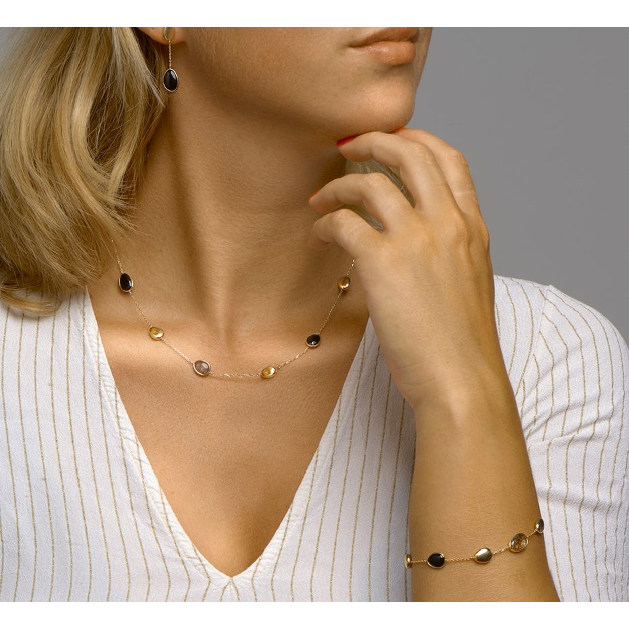 14k Geelgouden armband uitgevoerd met schitterend zwart rutiel en onyx. De armband heeft draaglengtes van 17 en 19cm. Uitgevoerd met een stevige karabijn sluiting.