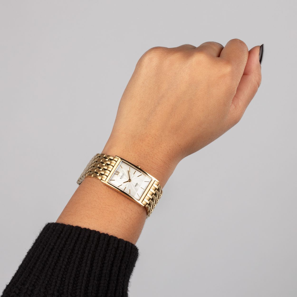 Dit dameshorloge van Boccia heeft een klassieke uitstraling. De Rolls Royce onder de Boccia horloges. De 3285-11 heeft een goudkleurige rechthoekige titanium horlogekast met een afmeting van 22mm en een parelmoer wijzerplaat. Aan de titanium kast zit een goudkleurige titanium schakelband met vouwsluiting. Het horloge heeft een saffierglas en is 5ATM. Of je nu sportief of chique gekleed gaat, dit horloge past bij elke outfit en iedere gelegenheid!