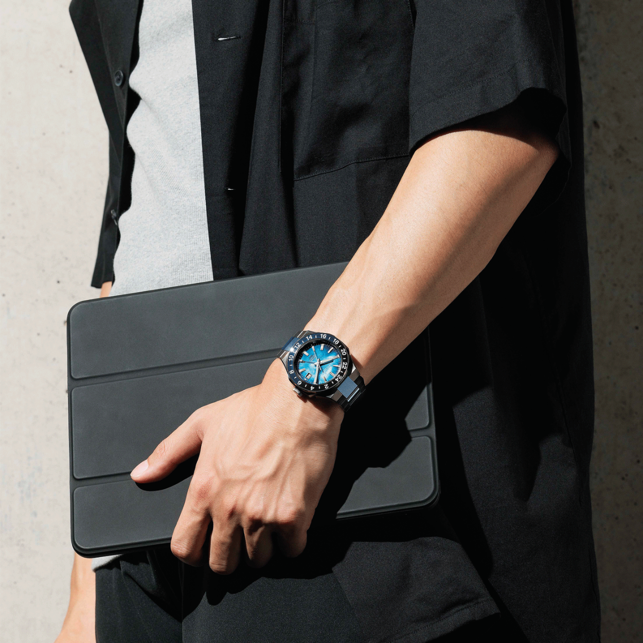 The GMT function allows the hour hand to be adjusted freely without affecting the minute, second, or 24-hour hands. The hour hand can be moved forward or backward in units of one hour to display local time, making it perfect for overseas vacations and business trips.