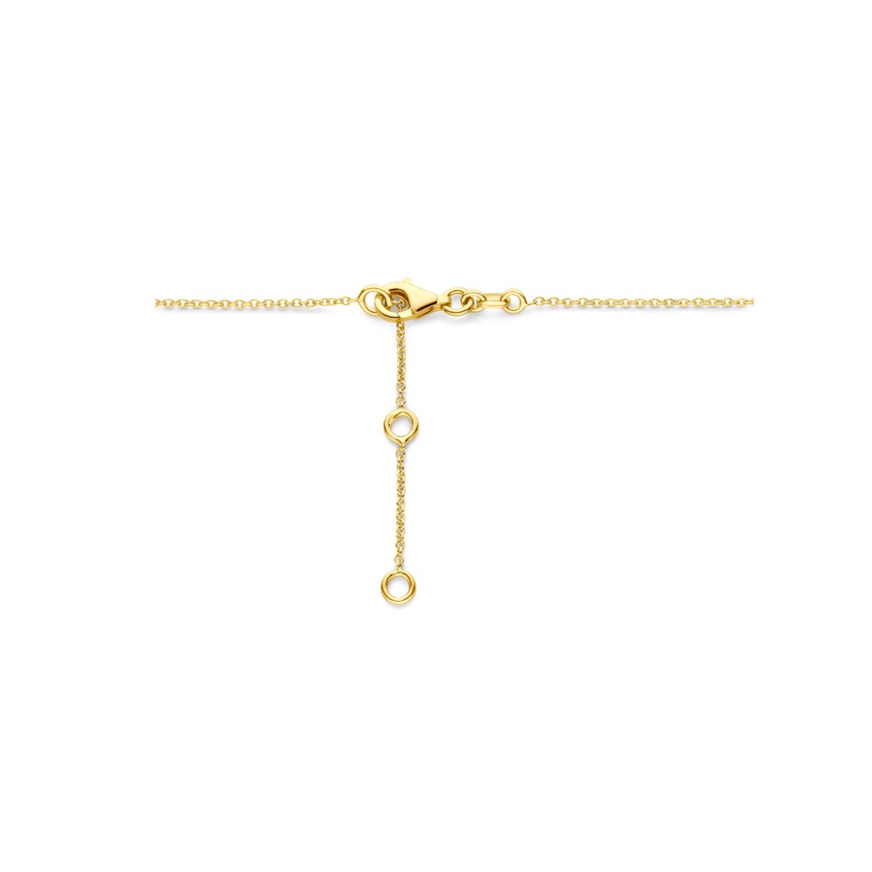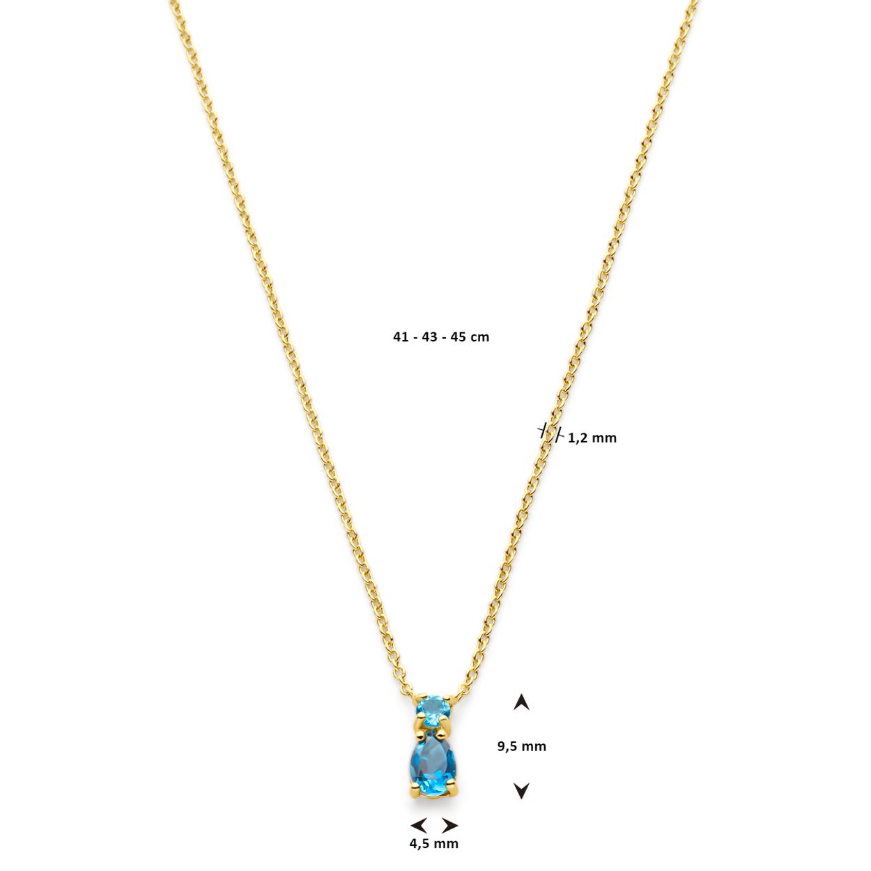 14k Geelgouden collier uitgevoerd met sky blue en London blue topaas stenen. Het collier heeft draaglengtes van 41-43-45cm. De schakelbreedte is 1.2mm.