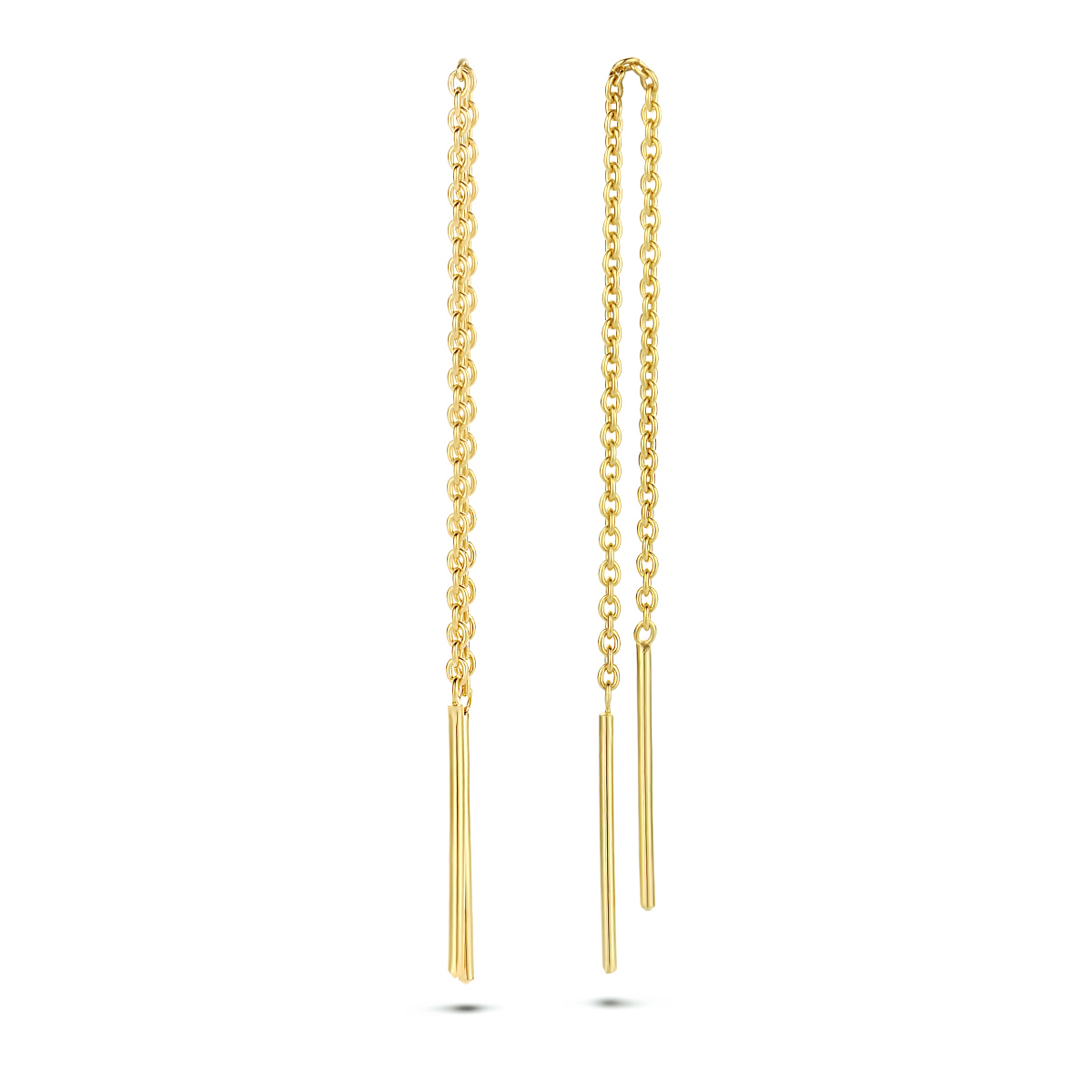 Geelgoud op 925 zilveren doortrekoorbellen uitgevoerd met een balkje van 16.5x0.9mm. Geen garantie op plating.