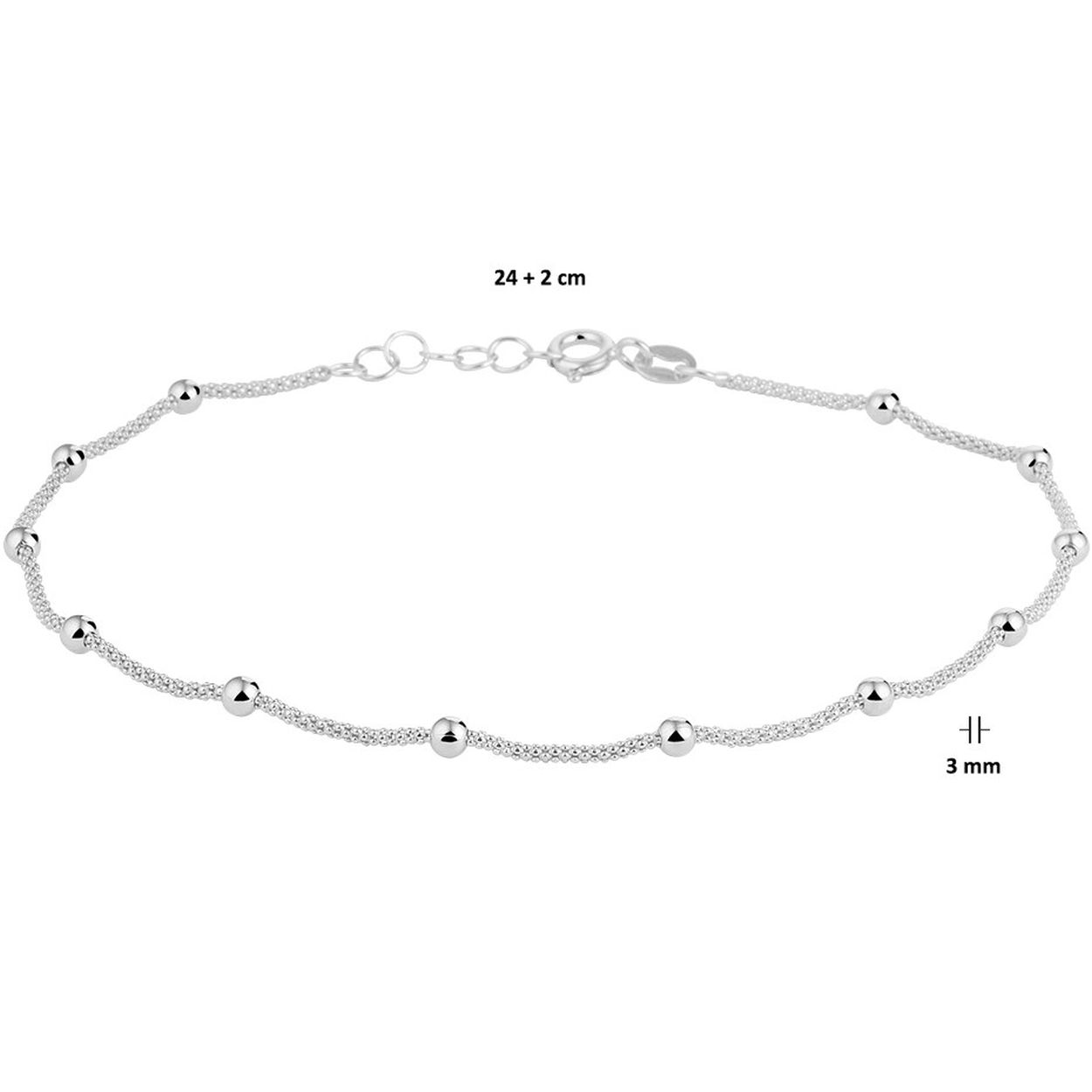 Zilver enkelbandje bolletjes 3,0mm 24+2cm