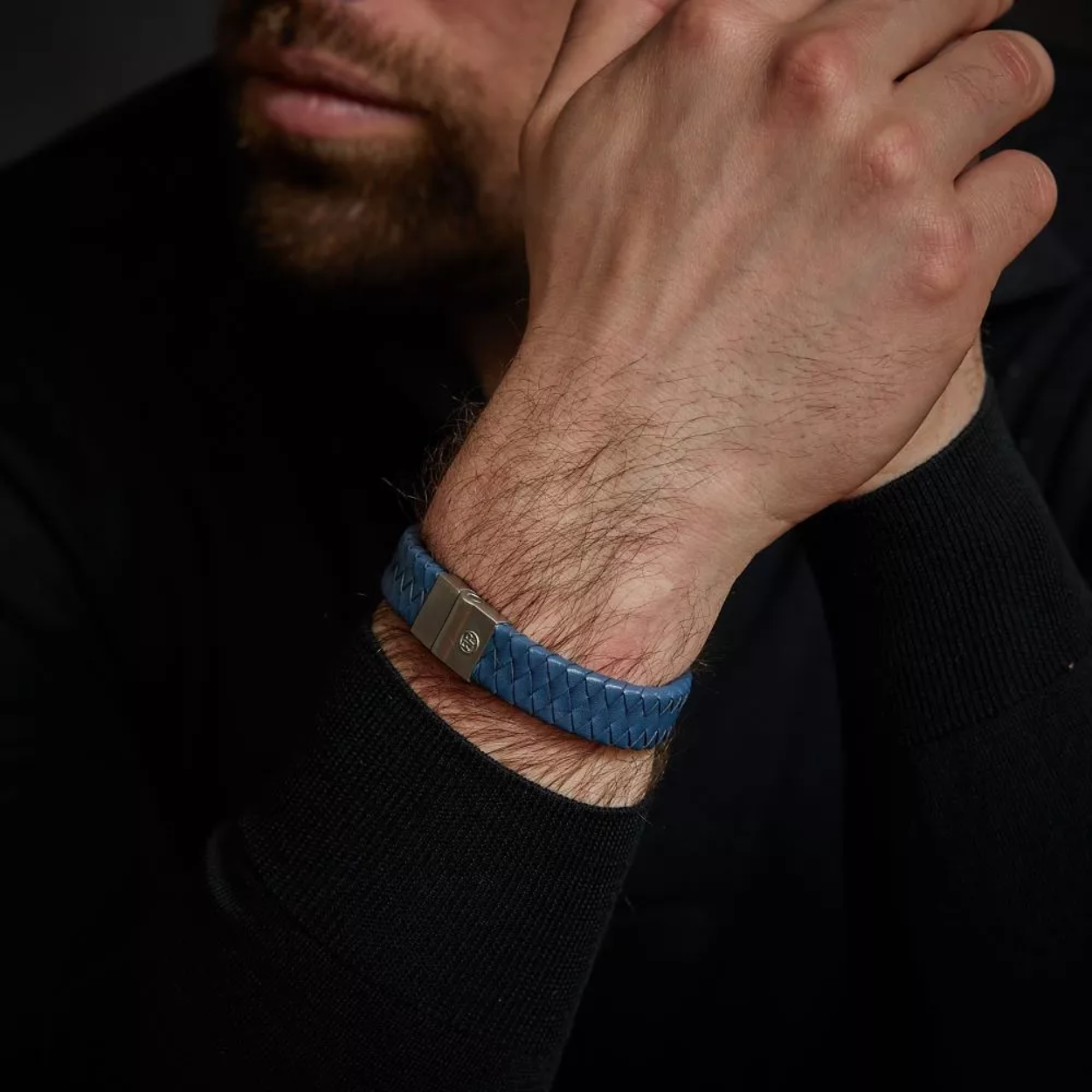Rebel & Rose Full Metal Premium 15mm Blue Leer/Staal RR-M0049-S-L