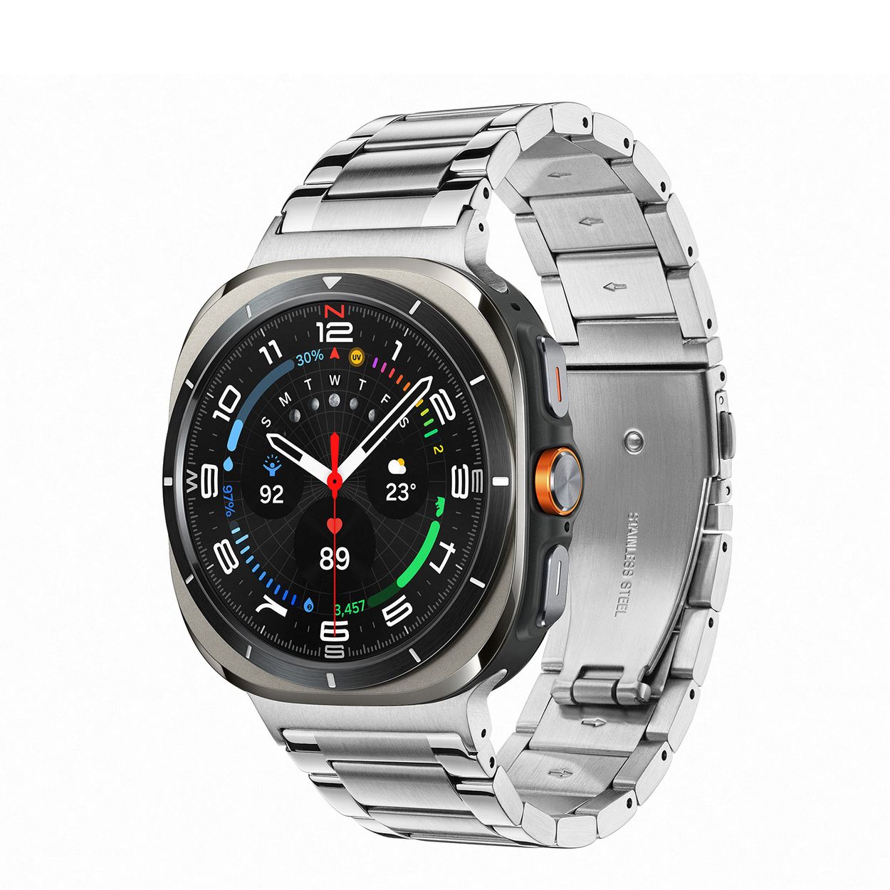 De Galaxy Watch combineert de uitstraling van een luxe horloge met de geavanceerde functies van de SAMSUNG smartwatches. De Galaxy Watch Ultra is de smartwatch met Wear OS van SAMSUNG en heeft genoeg power voor de hele dag dankzij de 3nm-processor. Navigeer nauwkeurig met Dual-Frequency GPS. Houd je hartslag, work-outs en slaap bij met de geavanceerde BioActive Sensor. Galaxy AI gebruikt deze gegevens om waardevolle inzichten over je gezondheid te geven en je welzijn te verbeteren met Energy Score en Wellness Tips. De Galaxy Watch is niet alleen zeer stijlvol, maar ook gebruiksvriendelijk. Nooit meer verdwaald dankzij onze nauwkeurigste gps ooit op een Galaxy Watch. De Galaxy Watch is stof- en spatwaterdicht en 10ATM gecertificeerd. De extra features, zoals het kompas, hartritme sensor, cycles meter, slaapmeter en nog heel veel meer maken de Galaxy Watch Ultra nog completer.