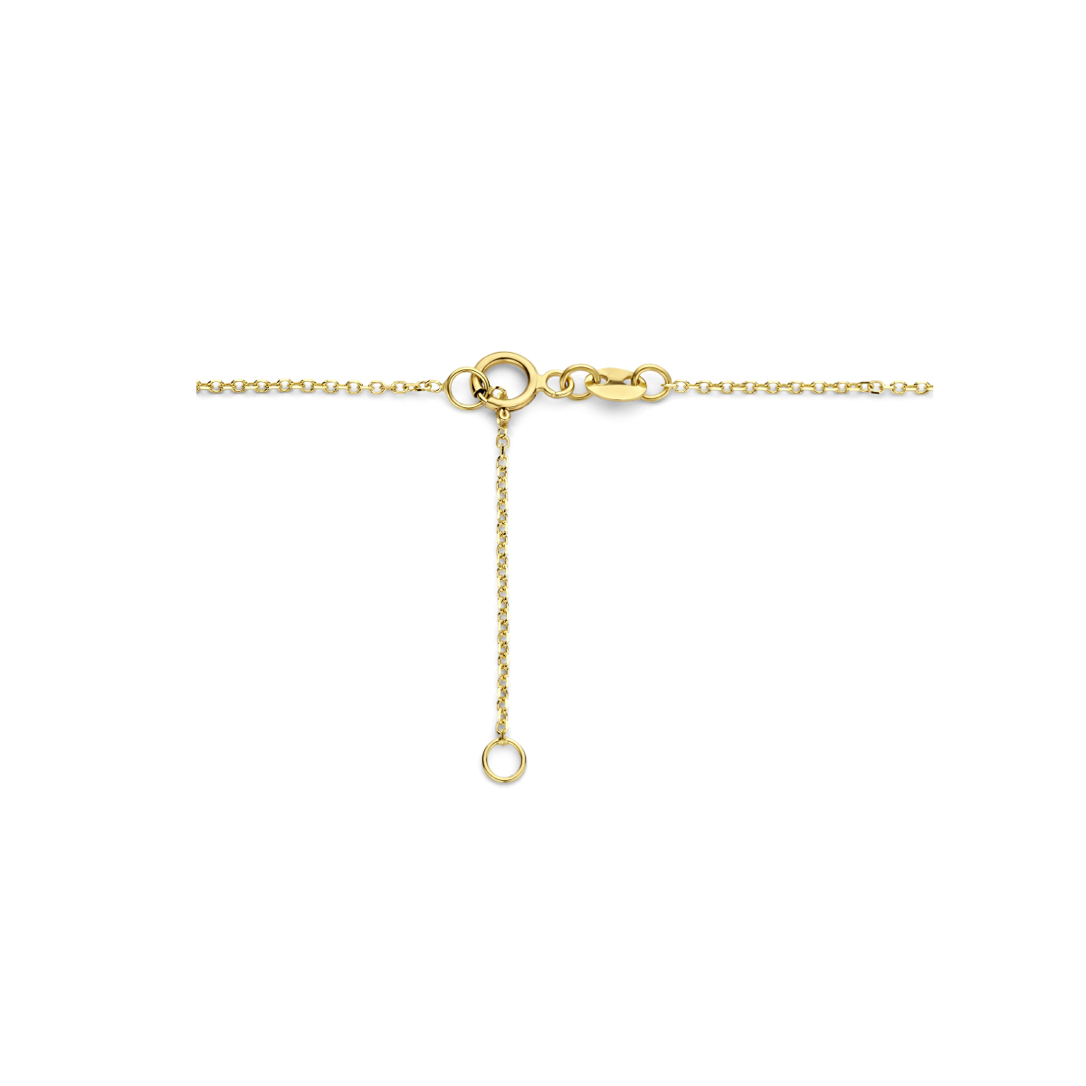 14k Geelgouden anker collier uitgevoerd met een graveerplaat van 4x22mm. Het collier heeft draaglengtes van 42 en 45cm.
