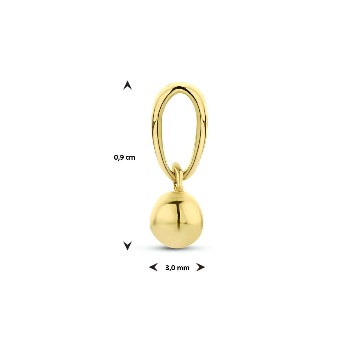 14krt. Geelgouden hanger in de vorm van een bolletje. De hanger heeft een totale hoogte van 9mm. Bolletje = 3mm.