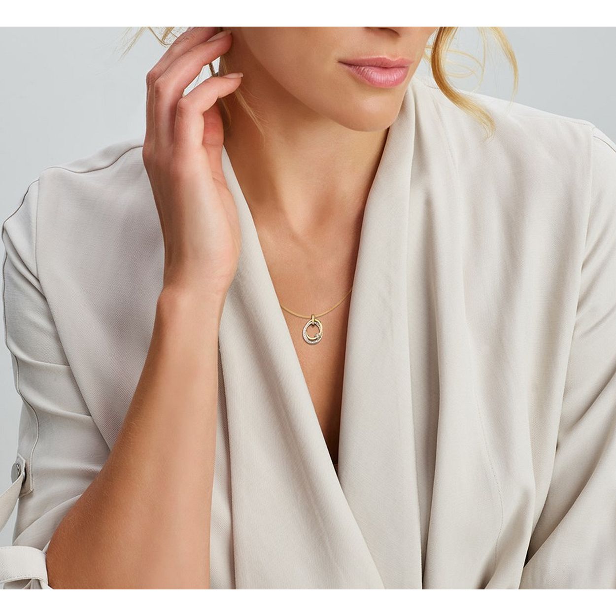 14krt Bicolor geel- en witgouden hanger uitgevoerd met schitterend diamant. De hanger heeft een totale hoogte van 1.8cm en een breedte van 11.8mm.