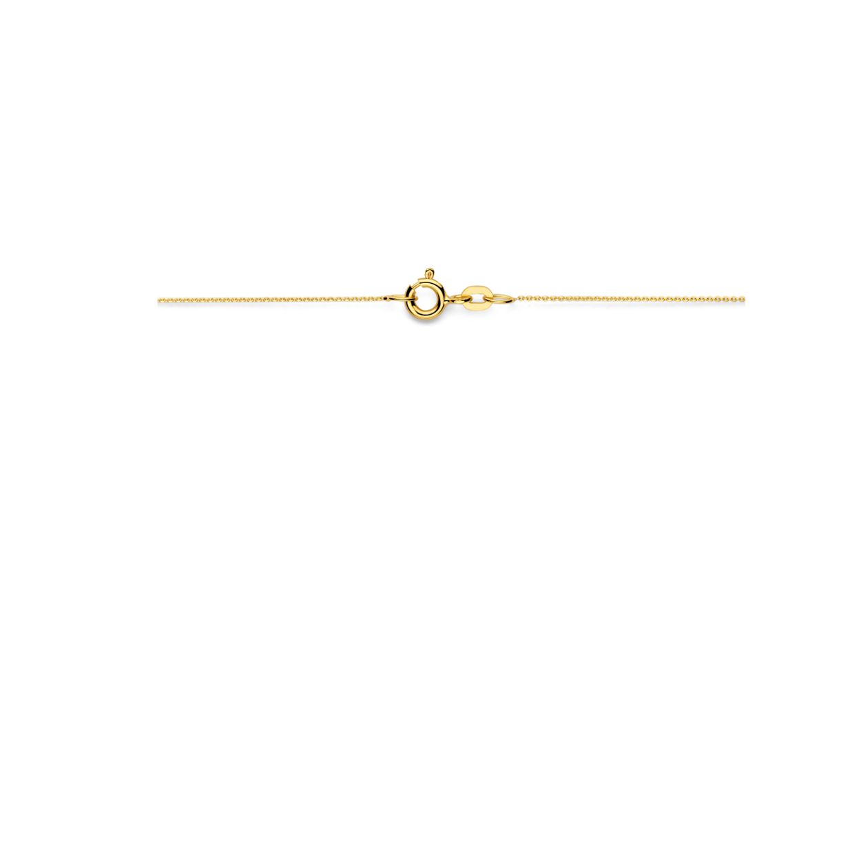 14k Geelgouden hanger uitgevoerd met granaat en diamant. De hanger heeft een afmeting van 21.5x13mm. Het diamantgewicht is 0.18ct.