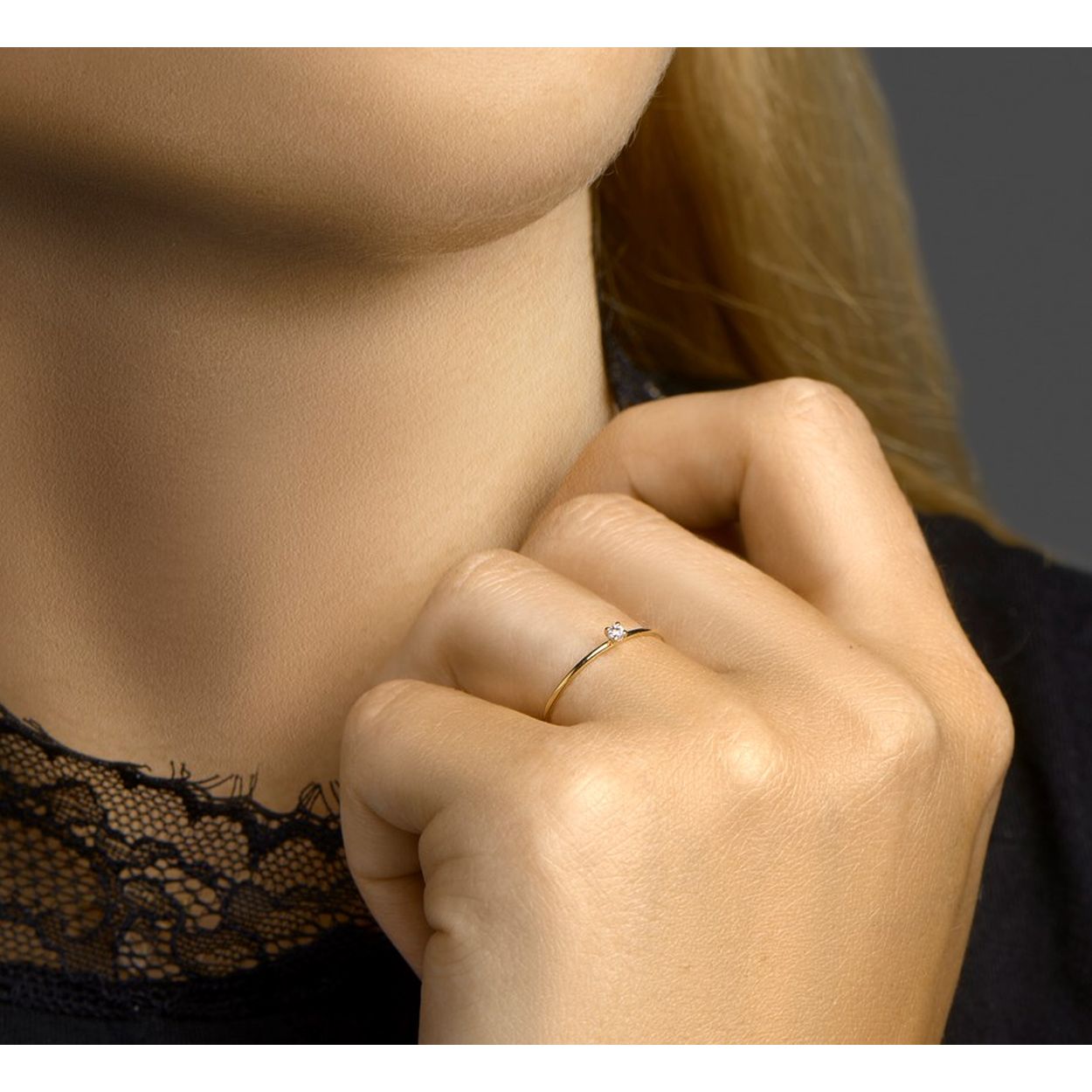14krt Geelgouden aanschuifring uitgevoerd met een schitterende zirkonia. De ring heeft een breedte van 2mm.