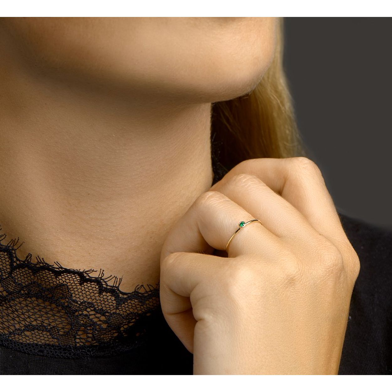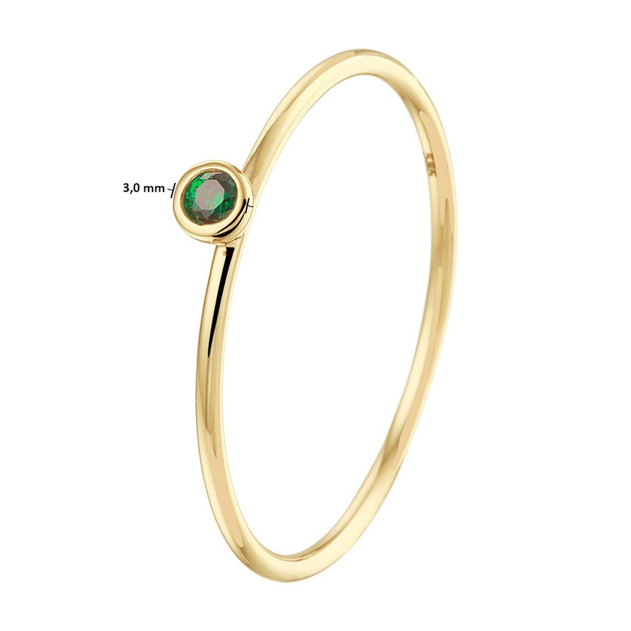 14krt Geelgouden aanschuifring uitgevoerd met een schitterende groen zirkonia. De ring heeft een breedte van 3mm.