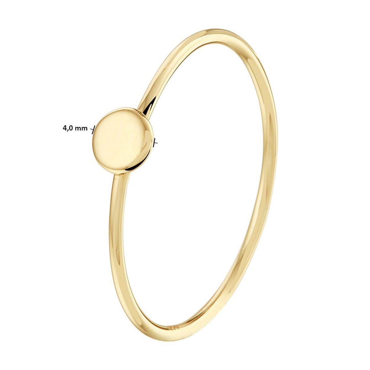 14k Geelgouden aanschuifring uitgevoerd met een rondje. Het rondje heeft een breedte van 4mm.