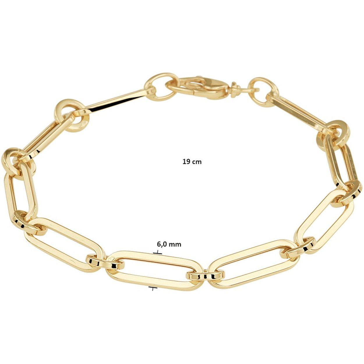 14k Geelgouden anker armband met een schakelbreedte van 6mm uitgevoerd met een stevige karabijn sluiting. De armband heeft een draaglengte van 19cm.