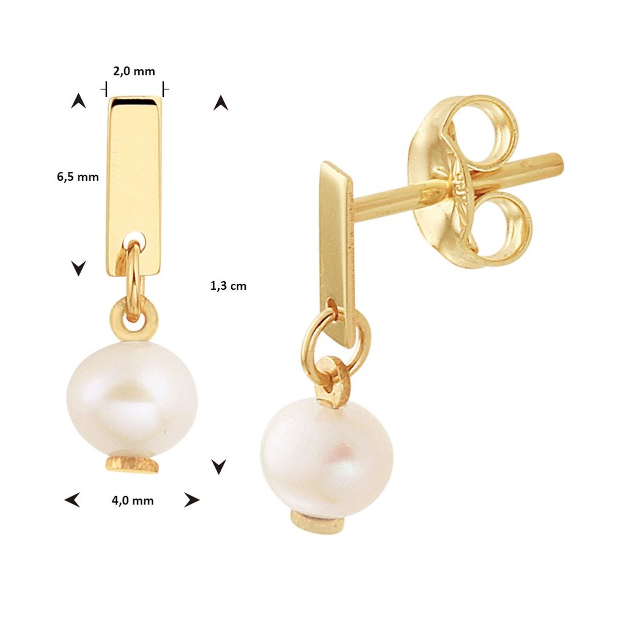 14k Geelgouden oorhangers uitgevoerd met een zoetwaterparel van 4mm. De oorhangers hebben een totale hoogte van 13mm.