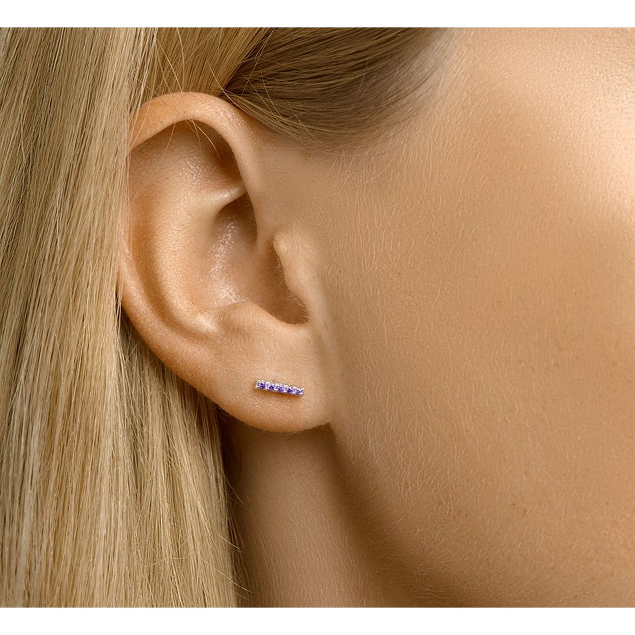 Gerhodineerd 925 zilveren oorknoppen in de vorm van een balkje uitgevoerd met amethyst. De oorknoppen hebben een afmeting van 8x1.7mm.