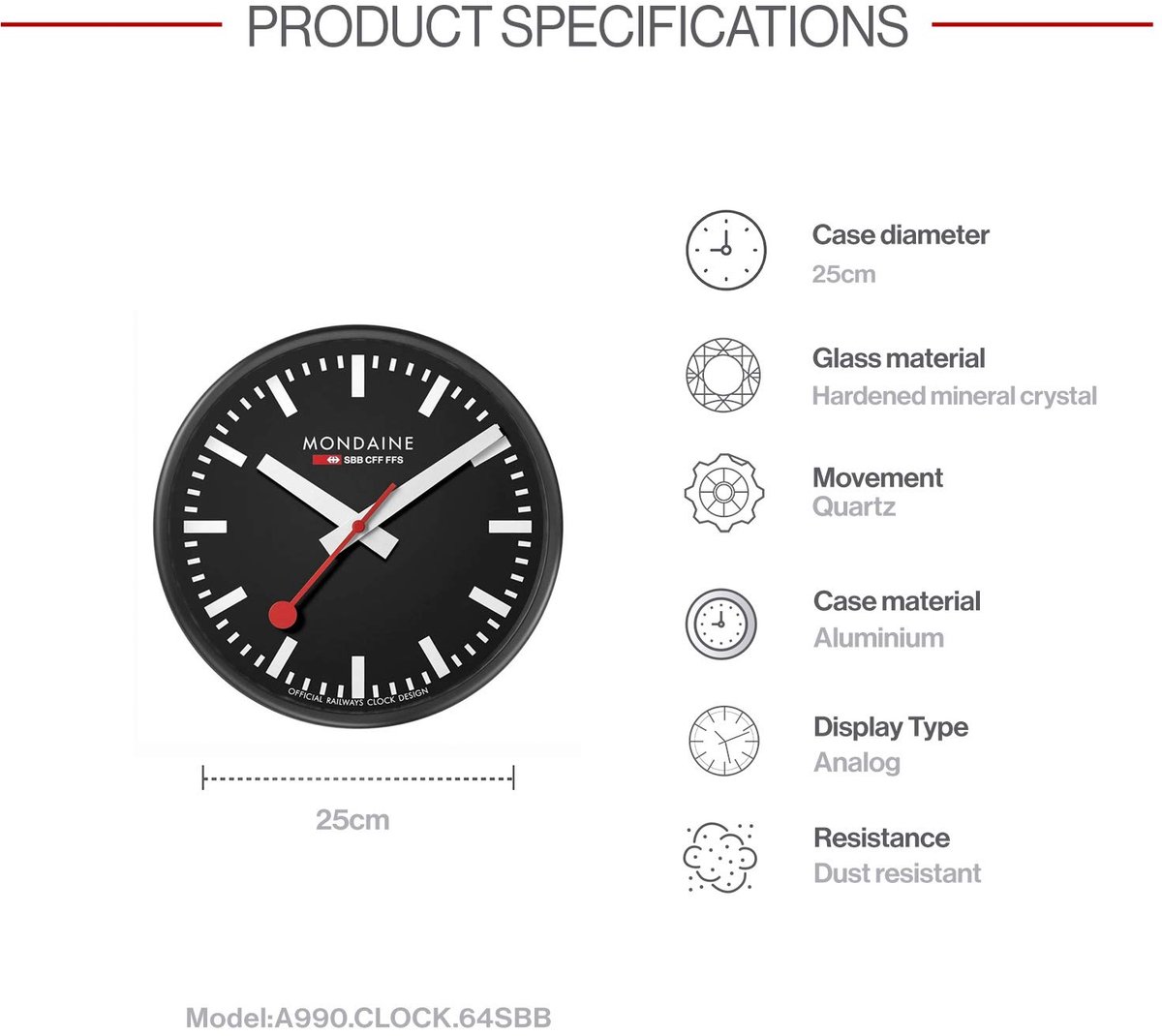Mondaine Official Railway Clock Stations - Wandklok A990.CLOCK.64SBB - zwart - 25cm