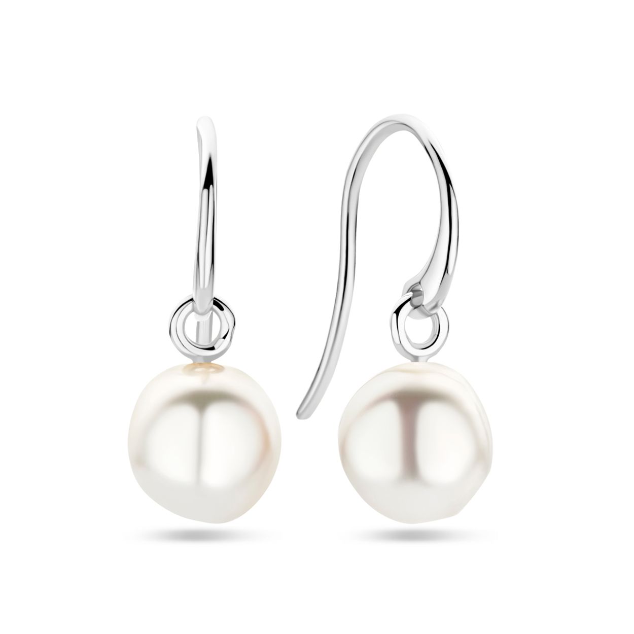 Gerhodineerd 925 zilveren oorhangers uitgevoerd met een parel. De oorhangers hebben een totale hoogte van 24mm.