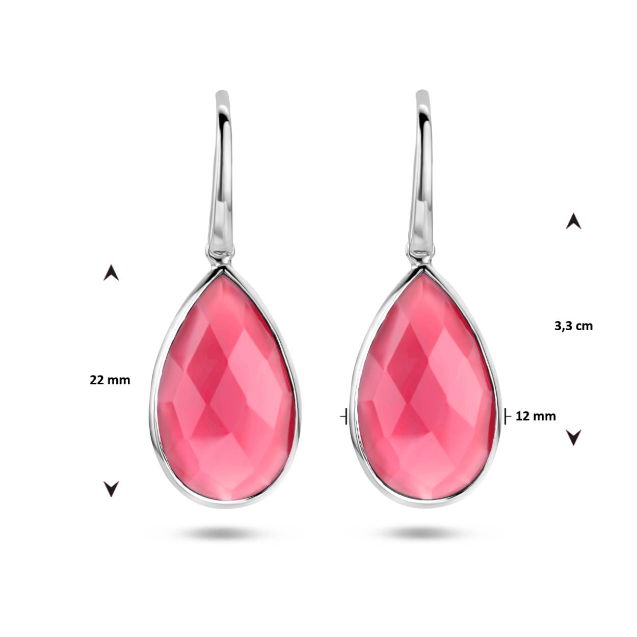 Gerhodineerd 925 zilveren oorhangers uitgevoerd met margenta gekleurde kwarts. De kwarts stenen hebben een totaal steengewicht van 12.00ct (2x 6,00ct)