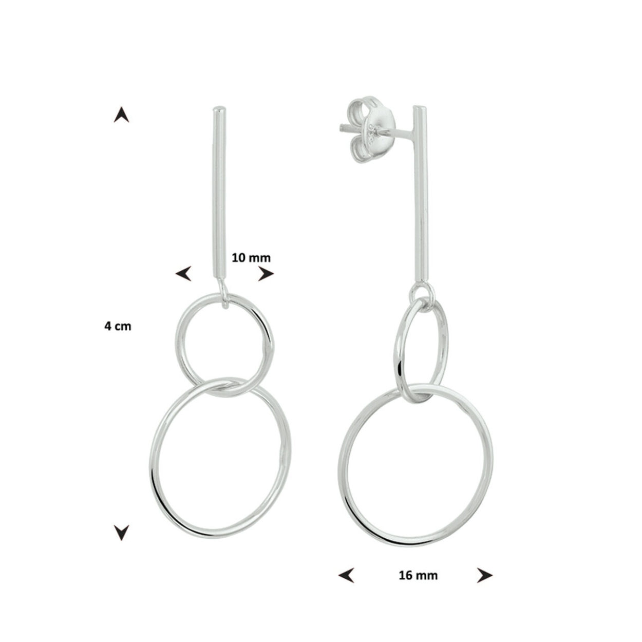 Gerhodineerd 925 zilveren oorhangers uitgevoerd met twee rondjes van 10 en 16mm. De oorhangers hebben een totale hoogte van 4cm.