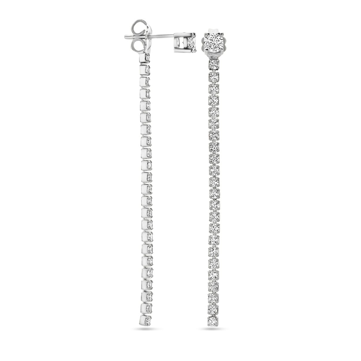 Gerhodineerd 925 zilveren oorhangers uitgevoerd met zirkonia. De oorhangers hebben een totale hoogte van 55mm.
