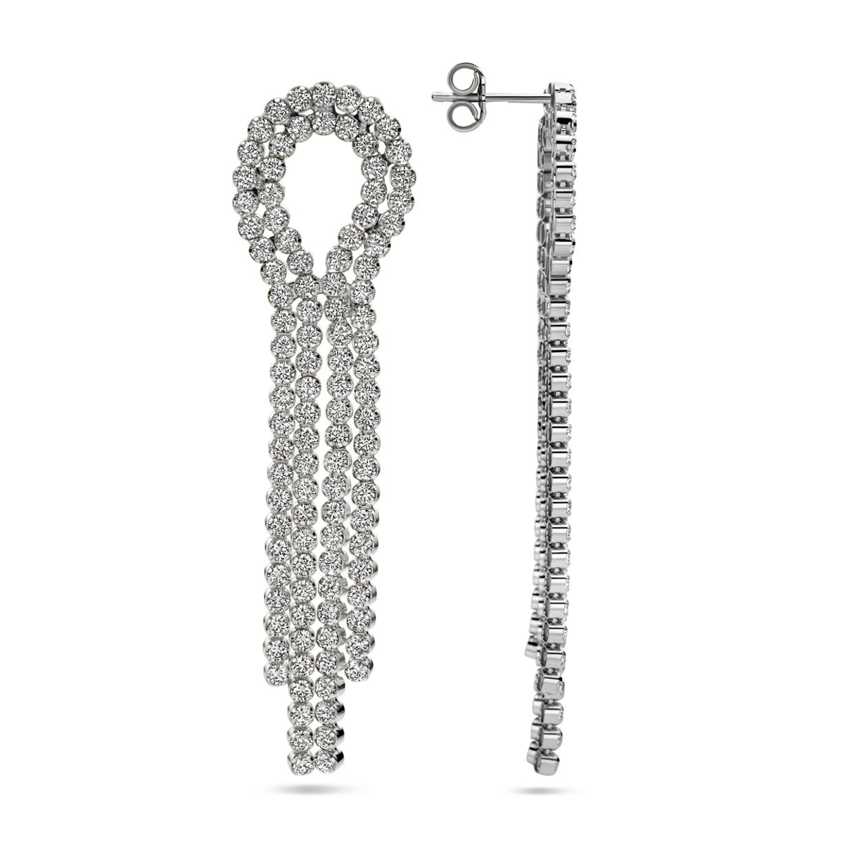 Gerhodineerd 925 zilveren oorhangers uitgevoerd met zirkonia. De oorhangers hebben een totale hoogte van 65mm.
