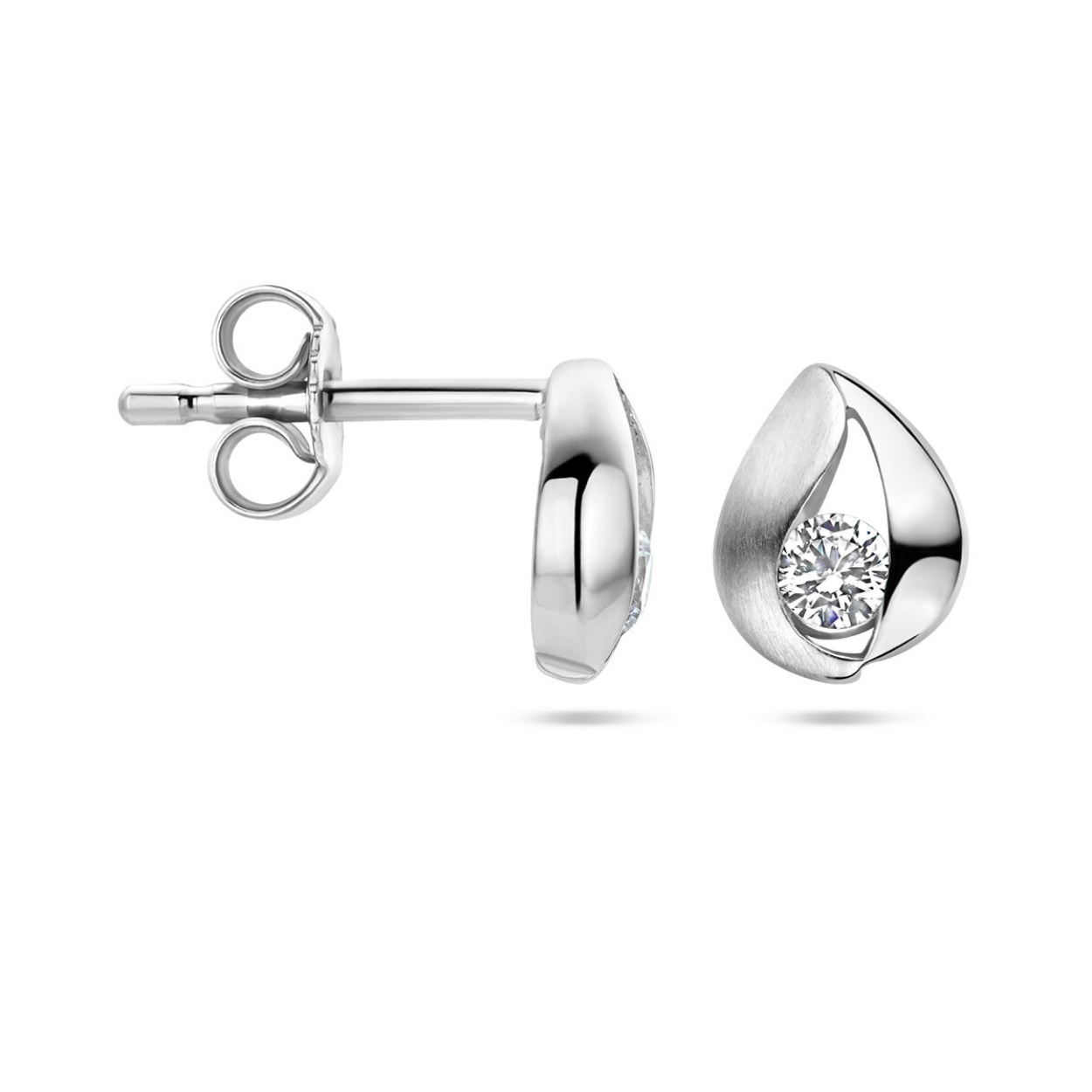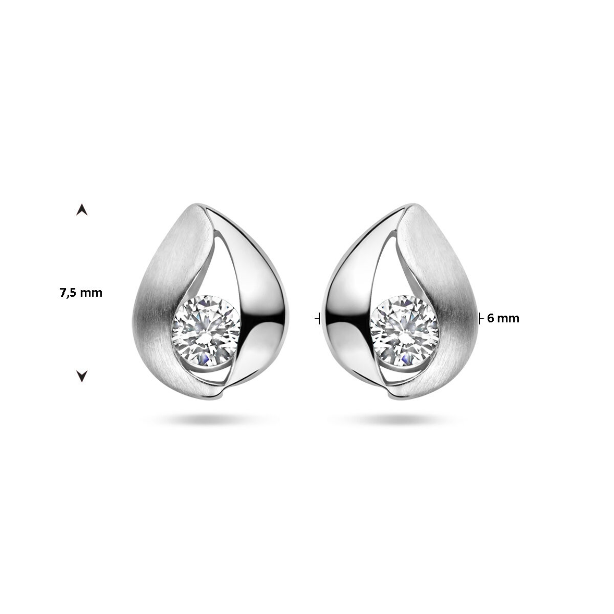 Gerhodineerd 925 zilveren oorknoppen uitgevoerd met zirkonia. De oorknoppen hebben een totale hoogte van 10.5mm.