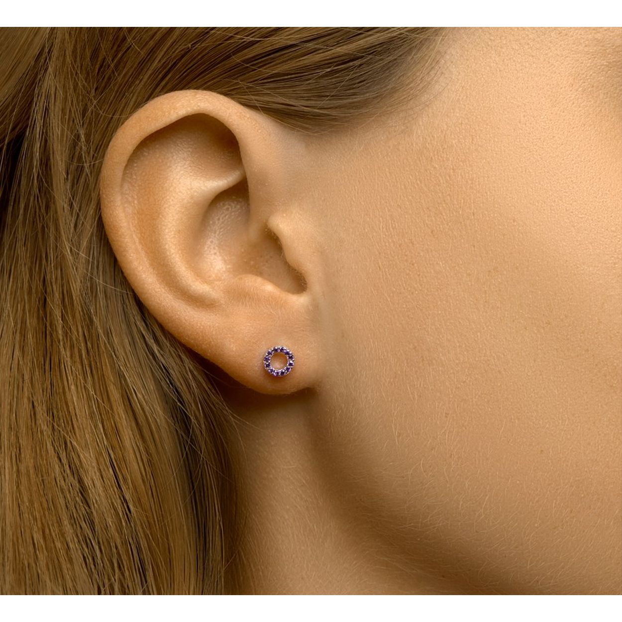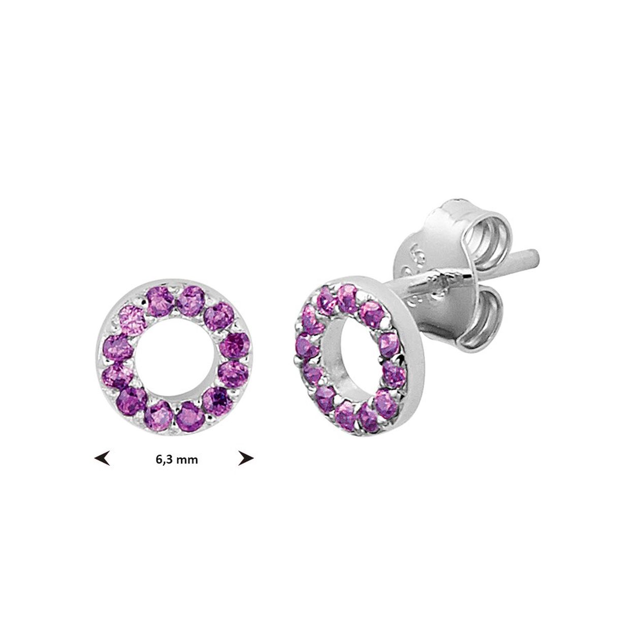 Gerhodineerd 925 zilveren oorknoppen uitgevoerd met amethyst. De oorknoppen hebben een diameter van 6.3mm.