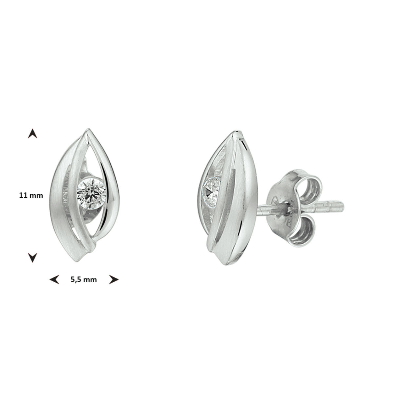 Gerhodineerd zilveren oorknoppen uitgevoerd met een heldere zirkonia en een poli/matte afwerking. De oorknoppen hebben een afmeting van 8.5x6mm.