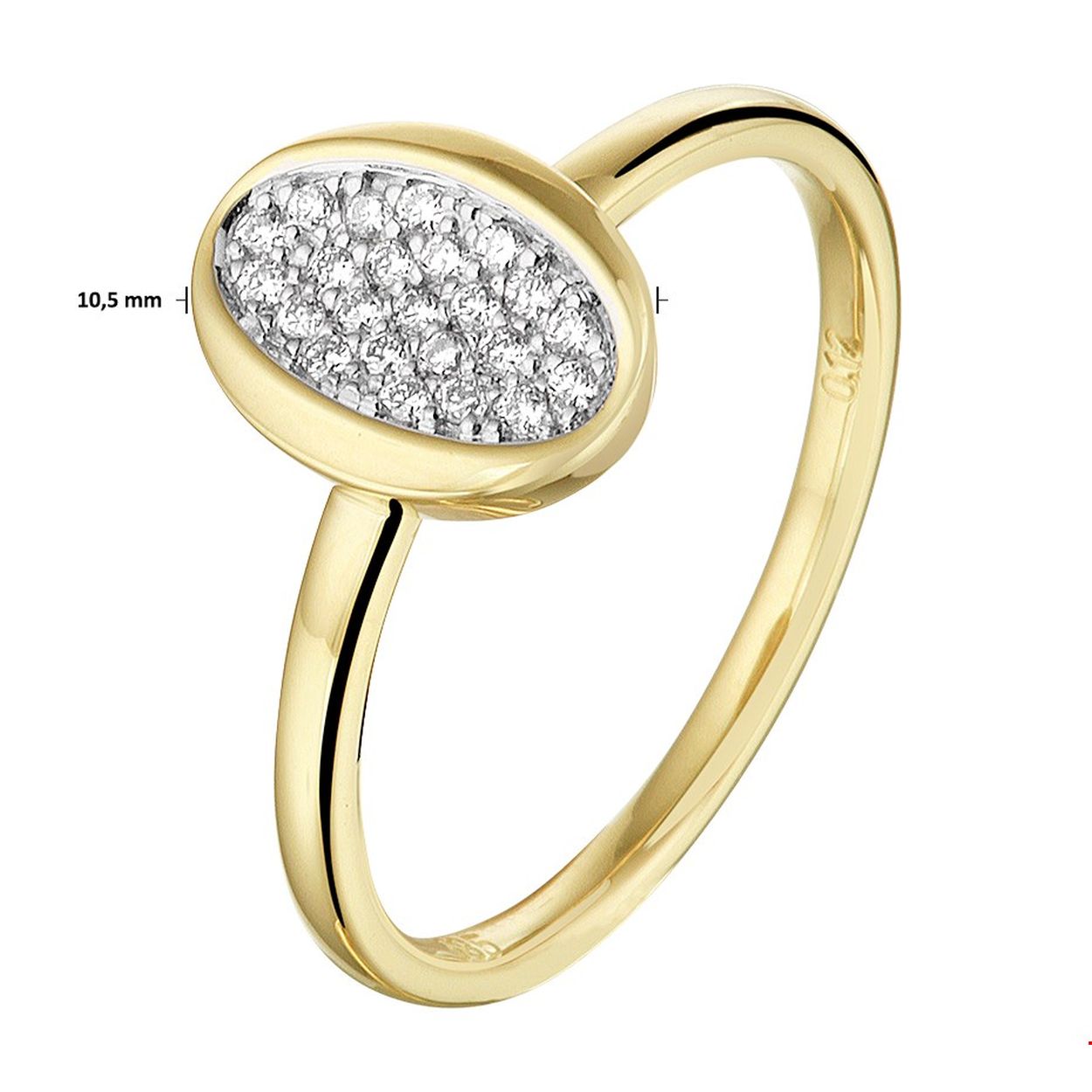 Beschrijving: Stijlvolle geelgouden ring met een breedte van 10.5mm uitgevoerd met briljant geslepen diamanten. Minimalistisch design met een exclusieve uitstraling.