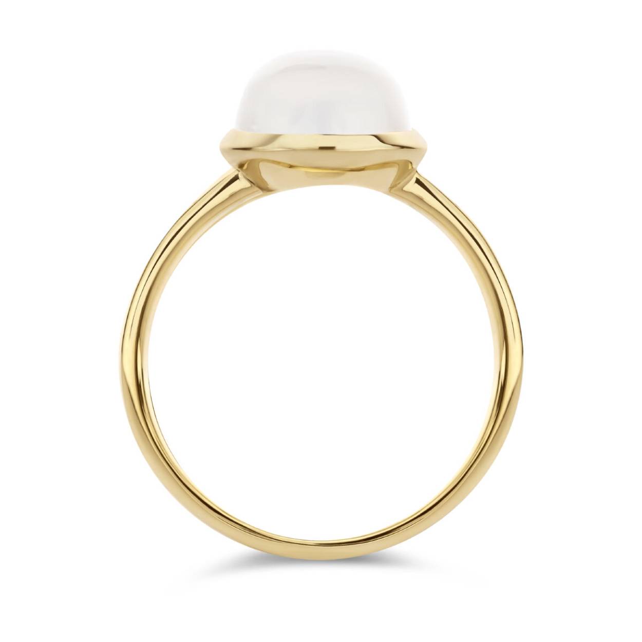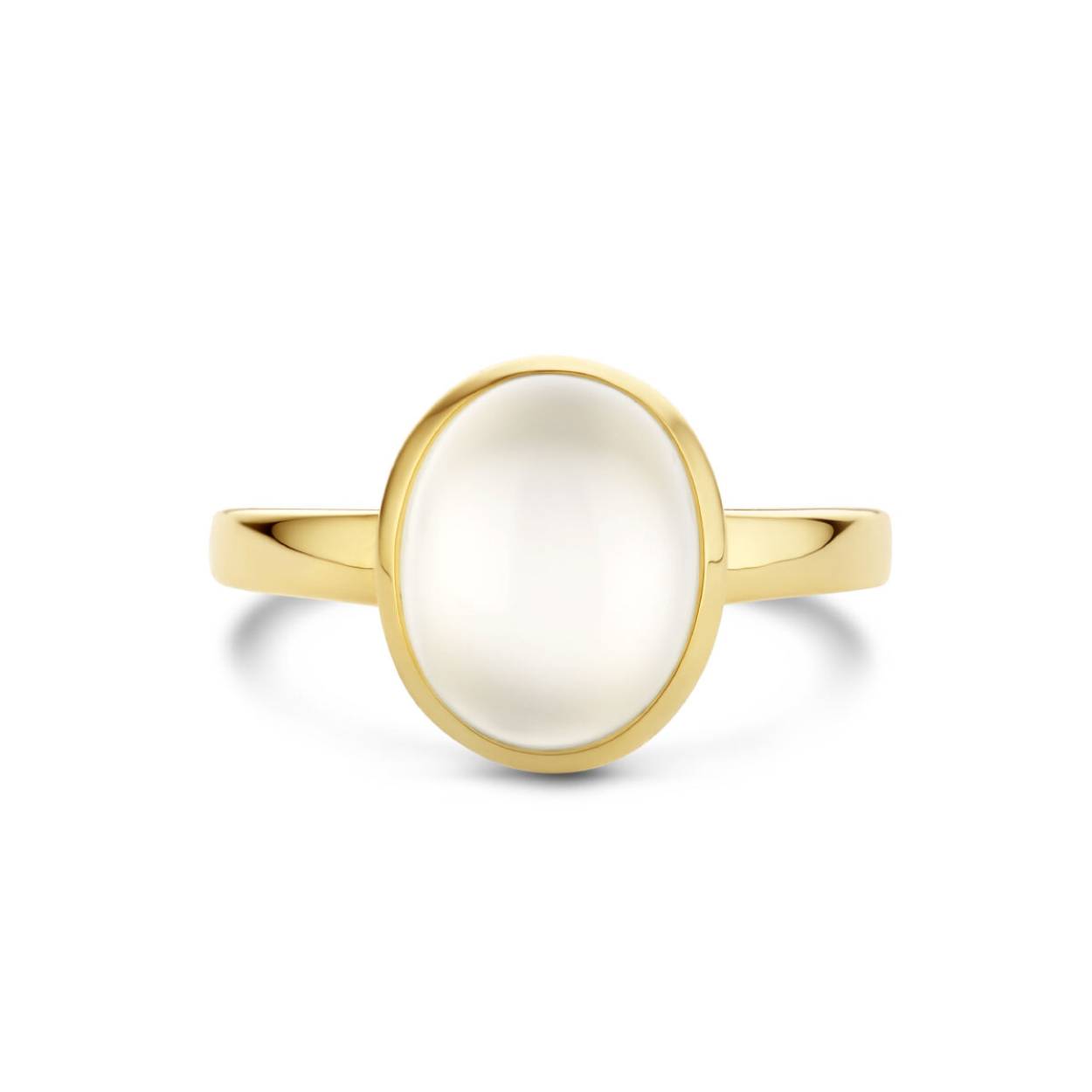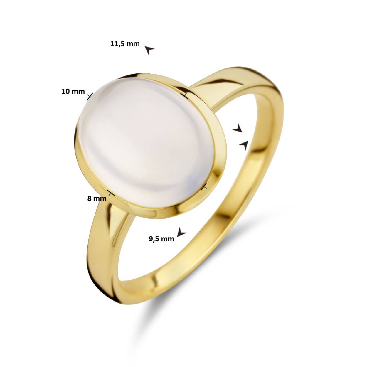 14k Geelgouden ring uitgevoerd met een schitterende witte maansteen. De ring heeft een afmeting van 11.5x9.5mm.