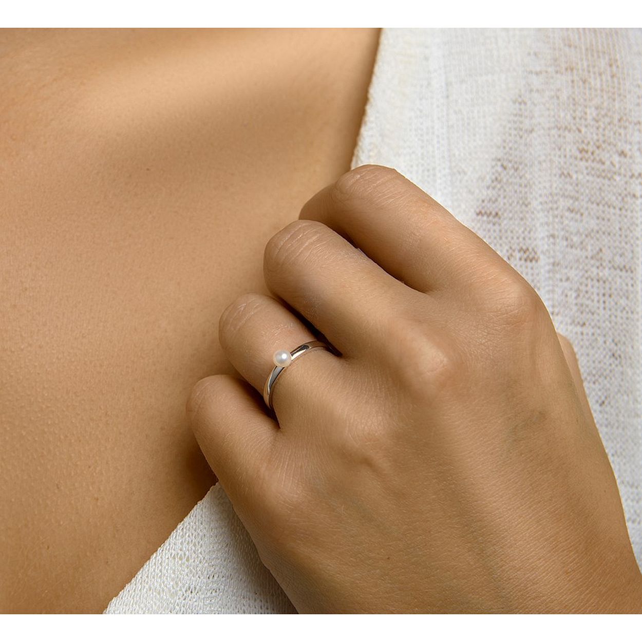 Gerhodineerd 925 zilveren ring uitgevoerd met een zoetwaterparel. De ring heeft een breedte van 4.5mm.