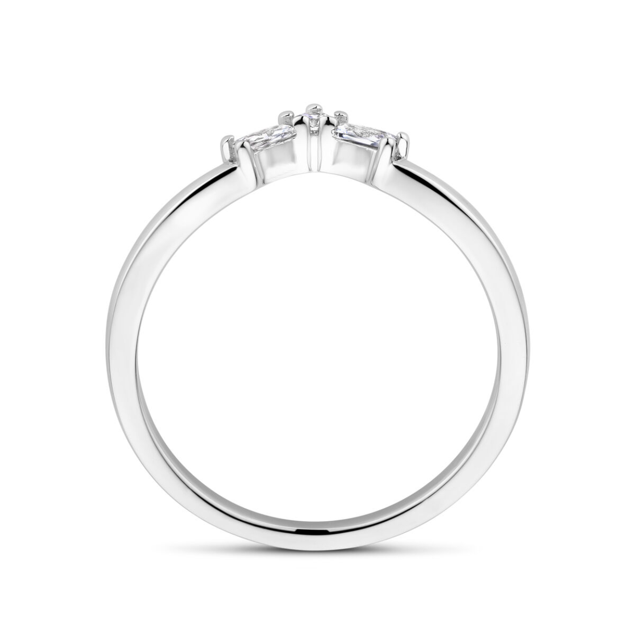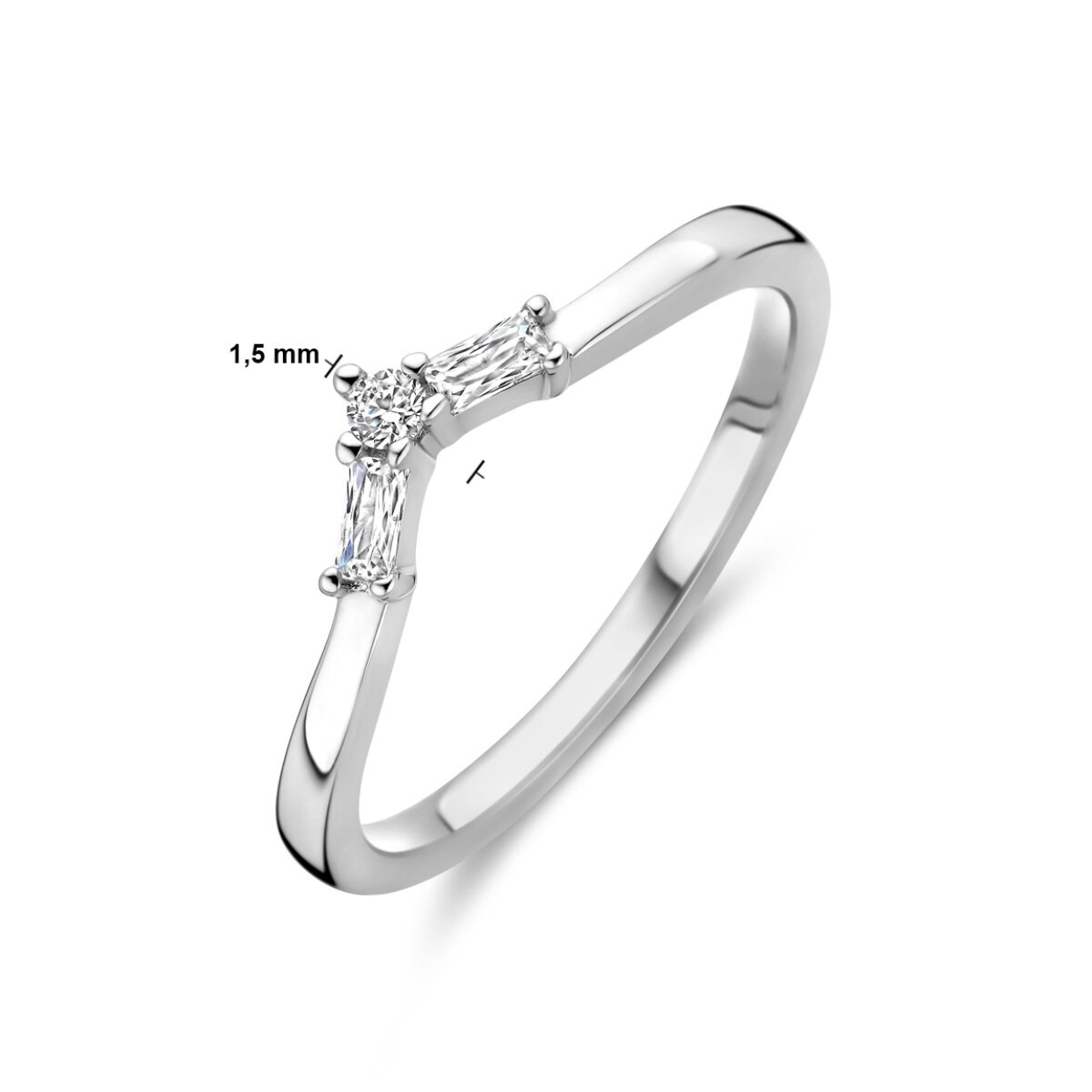 Gerhodineerd 925 zilveren ring uitgevoerd met zirkonia. De ring heeft een breedte van 1.5mm.