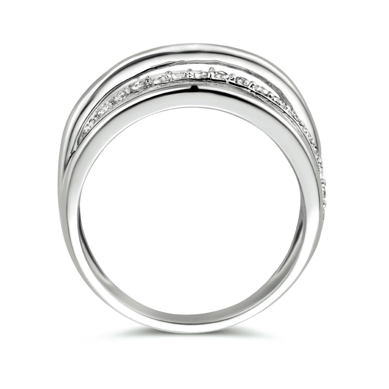 Gerhodineerd 925 zilveren ring uitgevoerd met schitterende zirkonia. De ring heeft een breedte van 7.5mm.