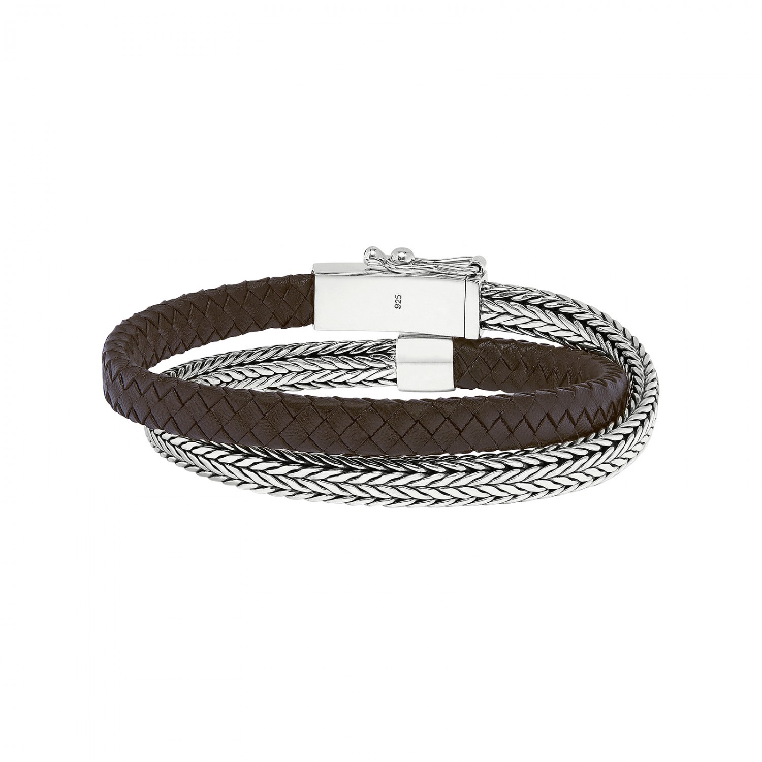 SILK Jewellery - Bruine Armband - Alpha - 344BRN.21 - Leer/Zilver Maat 21,0