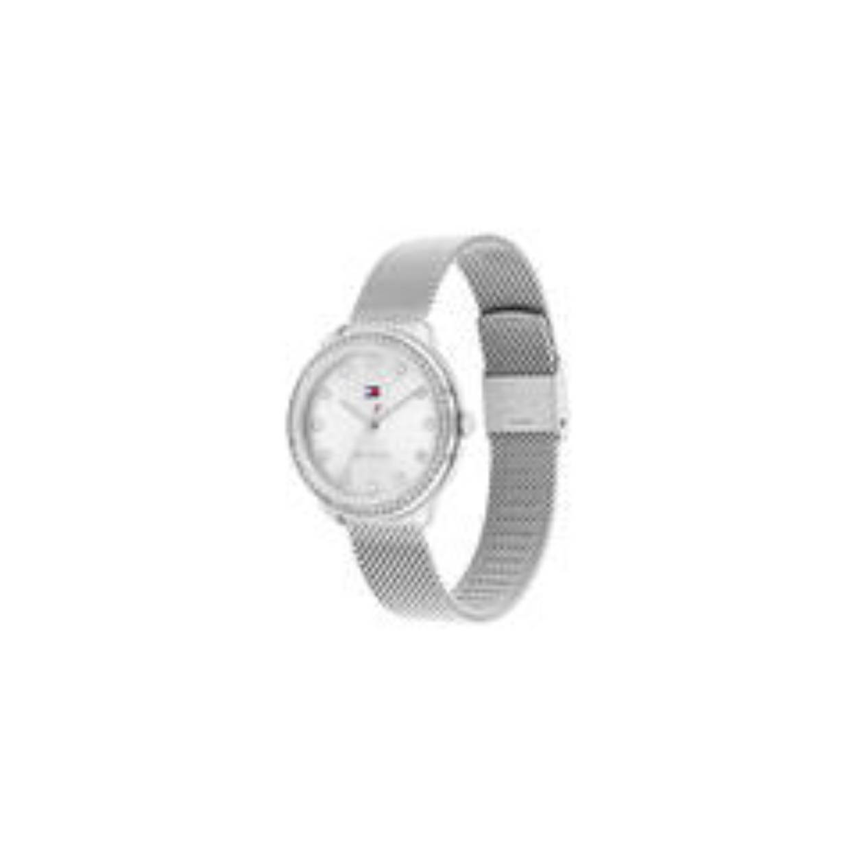 Dit specifieke horloge van Tommy Hilfiger uit de Demi serie met artikelnr: TH1782698 is een luxe dameshorloge die niet in je collectie mag ontbreken. Het stalen dameshorloge heeft een ronde zilverkleurige kast met een bezel vol kristallen en een zilverkleurige sunray wijzerplaat. De uren worden tevens weergegeven met kristallen. De zilverkleurige milanese band is op lengte verstelbaar en heeft een klapsluiting. Het horloge heeft een mineraalglas, een doorsnee van 33mm en is 3ATM.