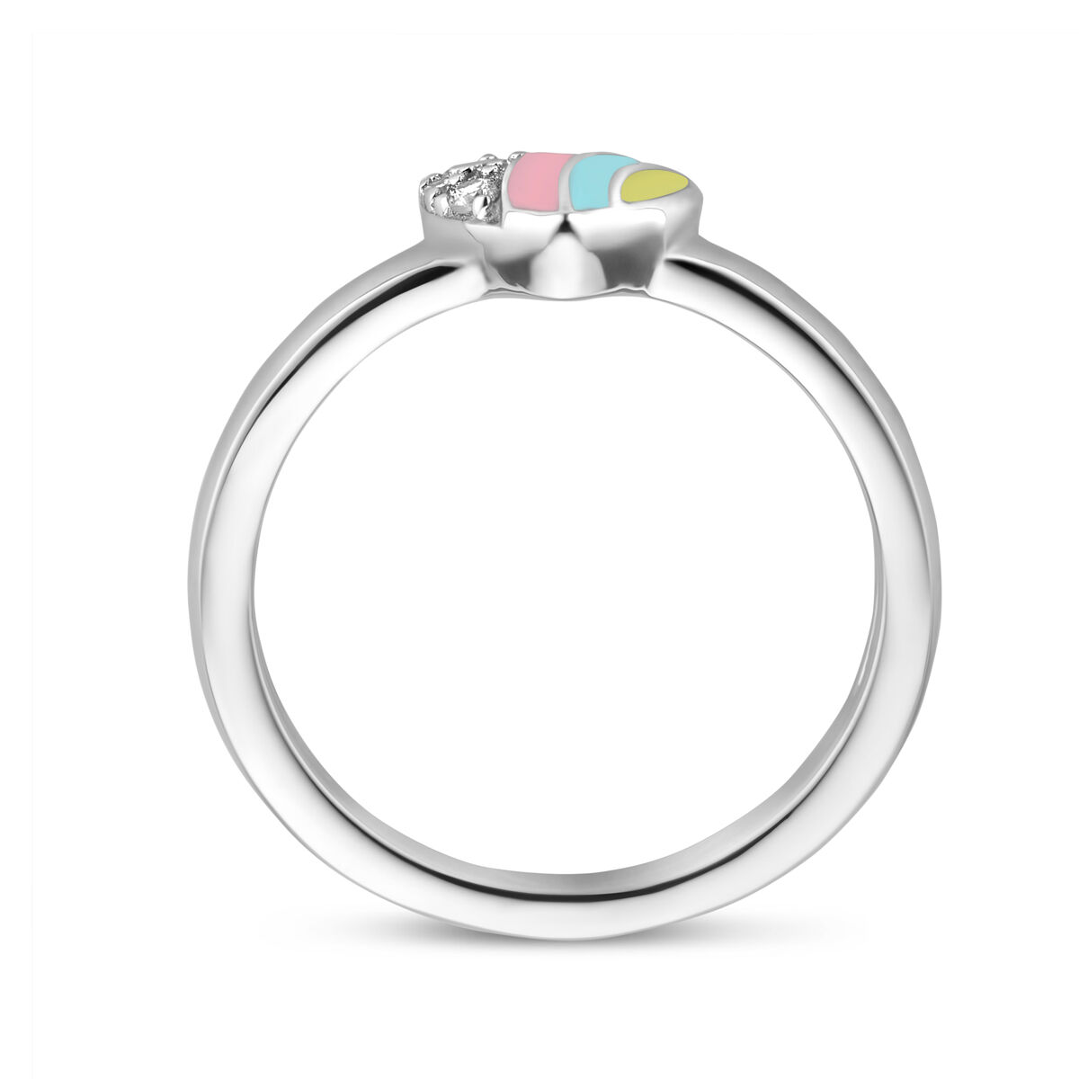 Gerhodineerd 925 zilveren ring uitgevoerd met een hart en zirkonia. De ring heeft een afmeting van 5.5x6mm.