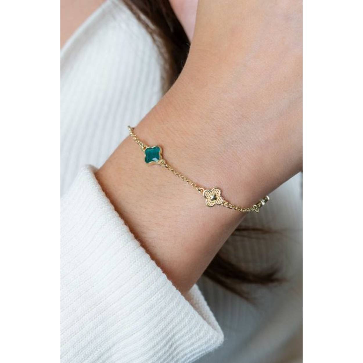 ZINZI gold plated zilveren schakel armband met twee donkerblauwe klavers en een groene klaver 16-19cm ZIA2583