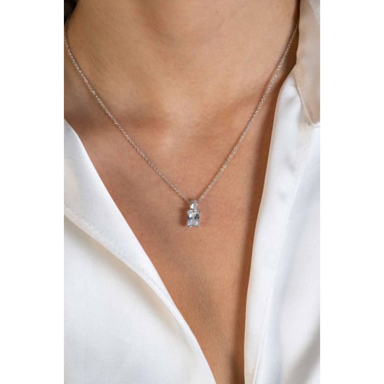 ZINZI zilveren hanger 14mm met rechthoekige witte zirconia en luxe hangoog ZIH2392 (zonder collier)